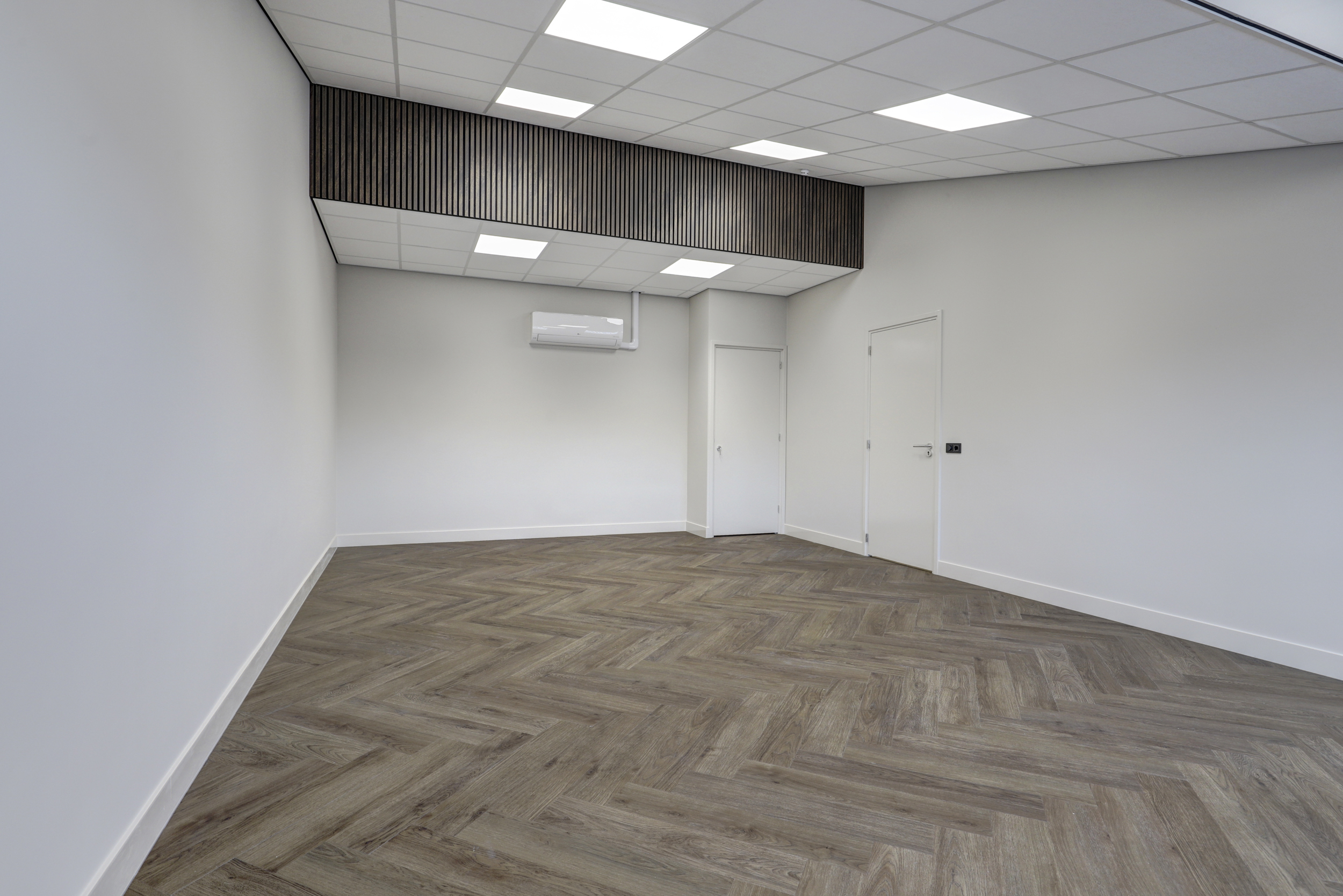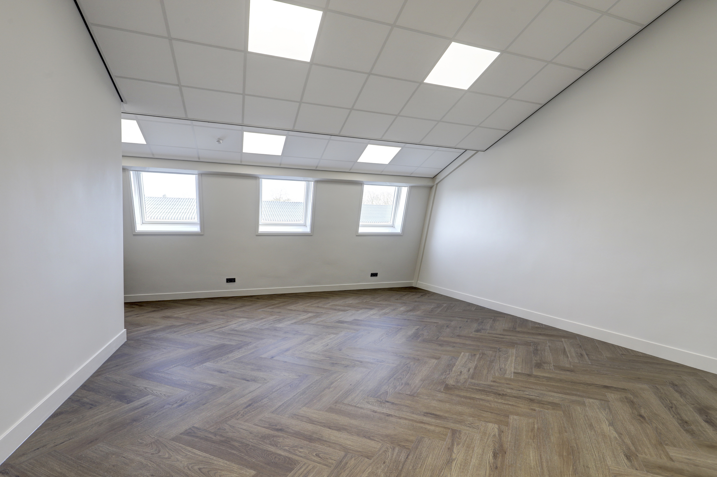 De kantoorruimte is hoogwaardig afgewerkt en kenmerkt zich door een moderne uitstraling met onder andere gestucte wanden, een fraaie vloerafwerking en een systeemplafond voorzien van LED-verlichting. Dankzij de aanwezigheid van meerdere dakramen is er sprake van een aangename en natuurlijke lichtinval. De ruimte is uitermate geschikt voor diverse kantoor- en dienstverlenende activiteiten.